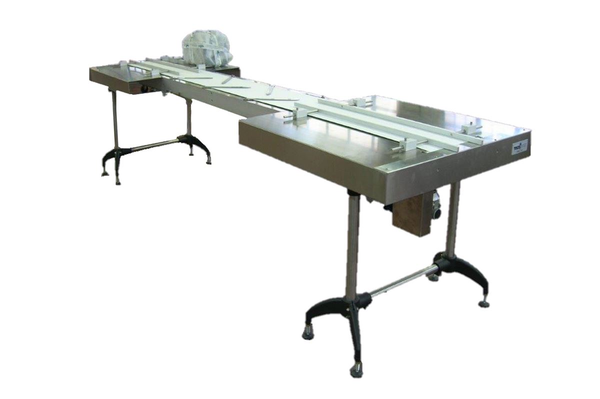 The conveyor belt can be made either in chain and plastic or metal mesh or in Teflon or polyurethane tape, while the parts related to handling are in stainless steel, aluminum and plastic material; the floor supports are adjustable in height for perfect flatness.