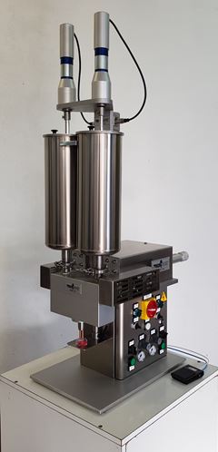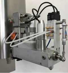 The doser heads are devices in stainless-steel or anodized aluminum, which receive waxes and cosmetic pastes in a liquid or pasty state from a melting tank and pour them onto a cooling surface or directly into the final containers. In order to keep the material at the correct temperature, so as to ensure that it maintains the right level of viscosity, they are heated with electric resistances; the connection to the melting tank is obtained either directly or through a connection hose, which can also be heated to avoid creating alterations in the product during processing. The valves are made of stainless steel or polymer.